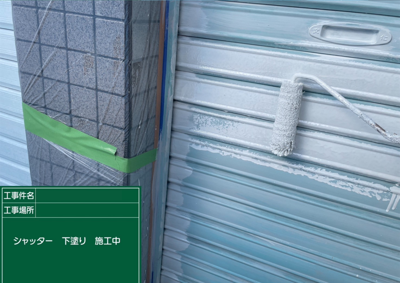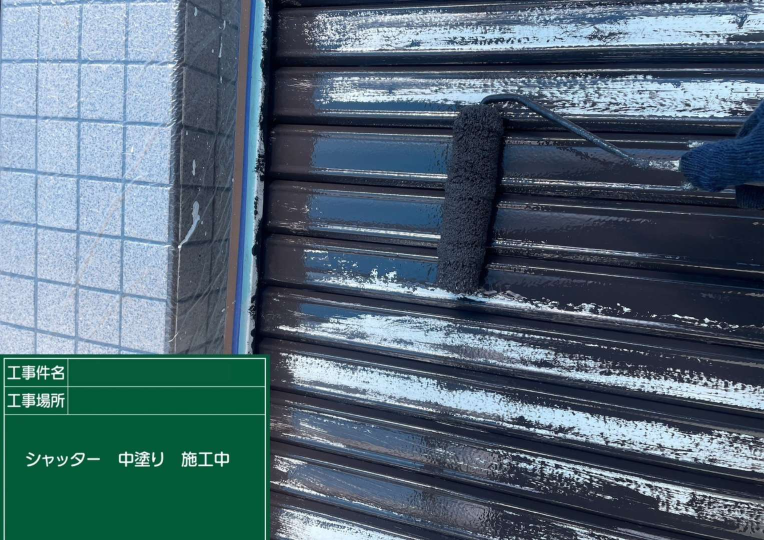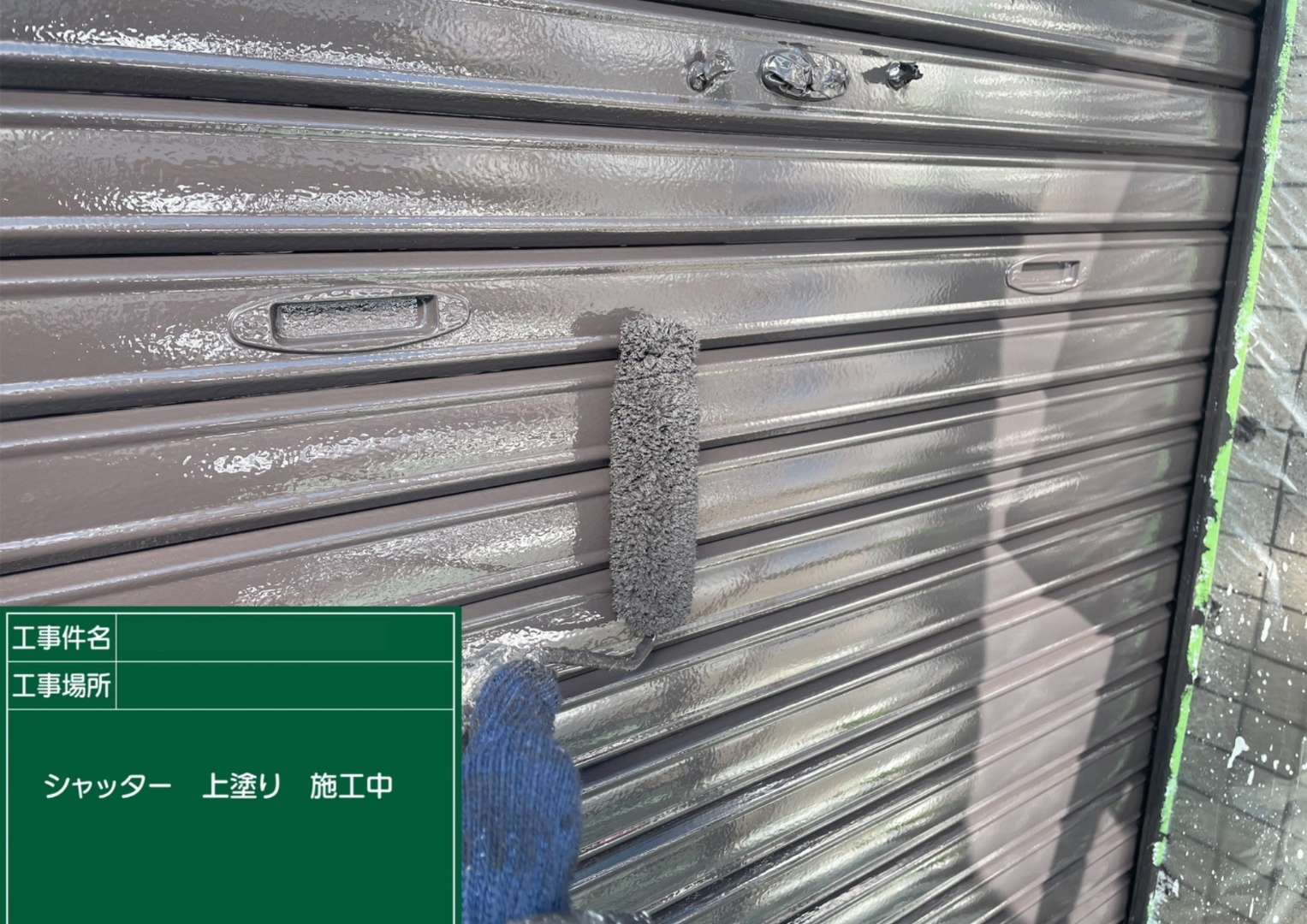 凹凸のあるシャッターの溝に合わせて、ローラーでサビ止め塗料を均一に塗布していきます。