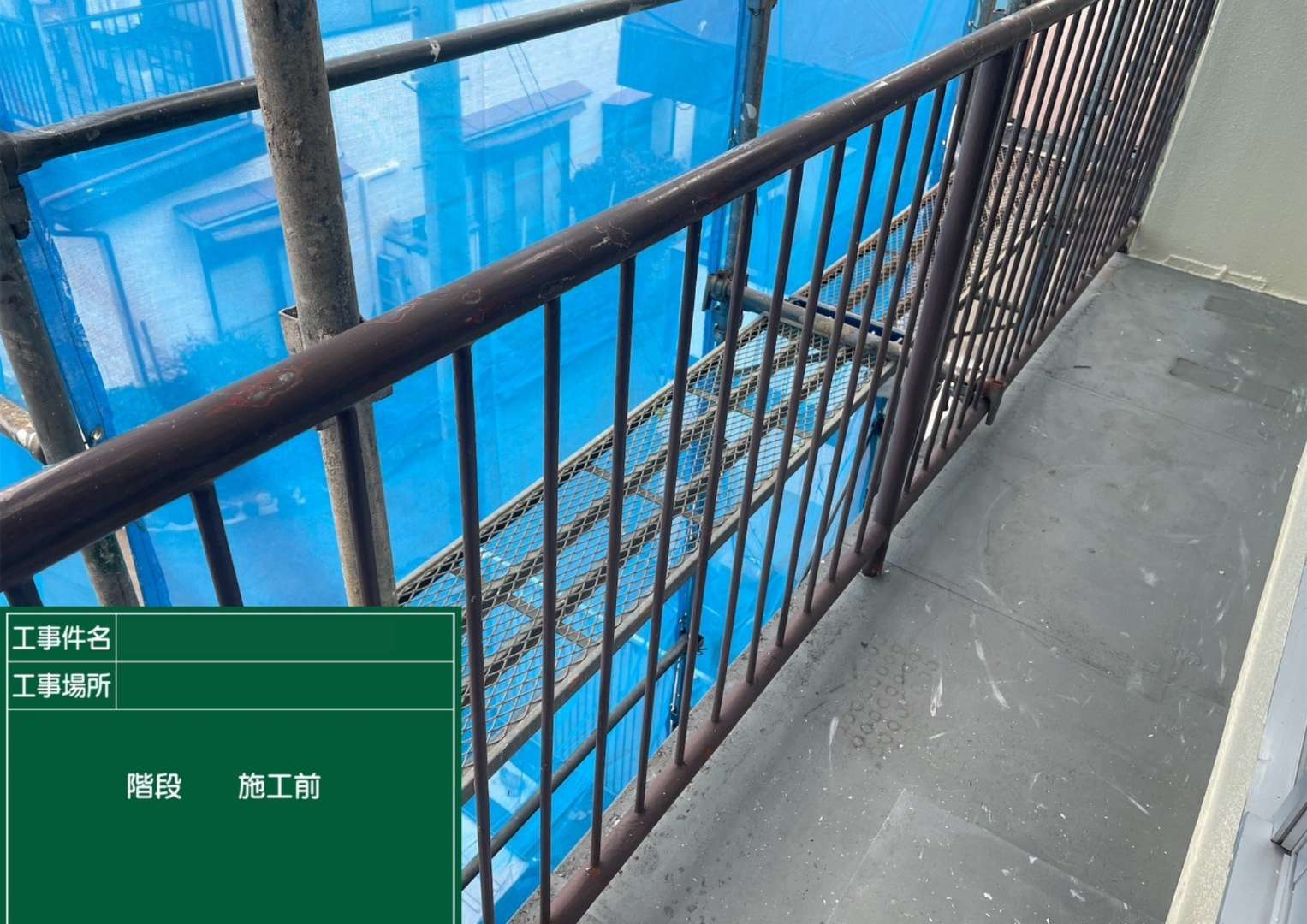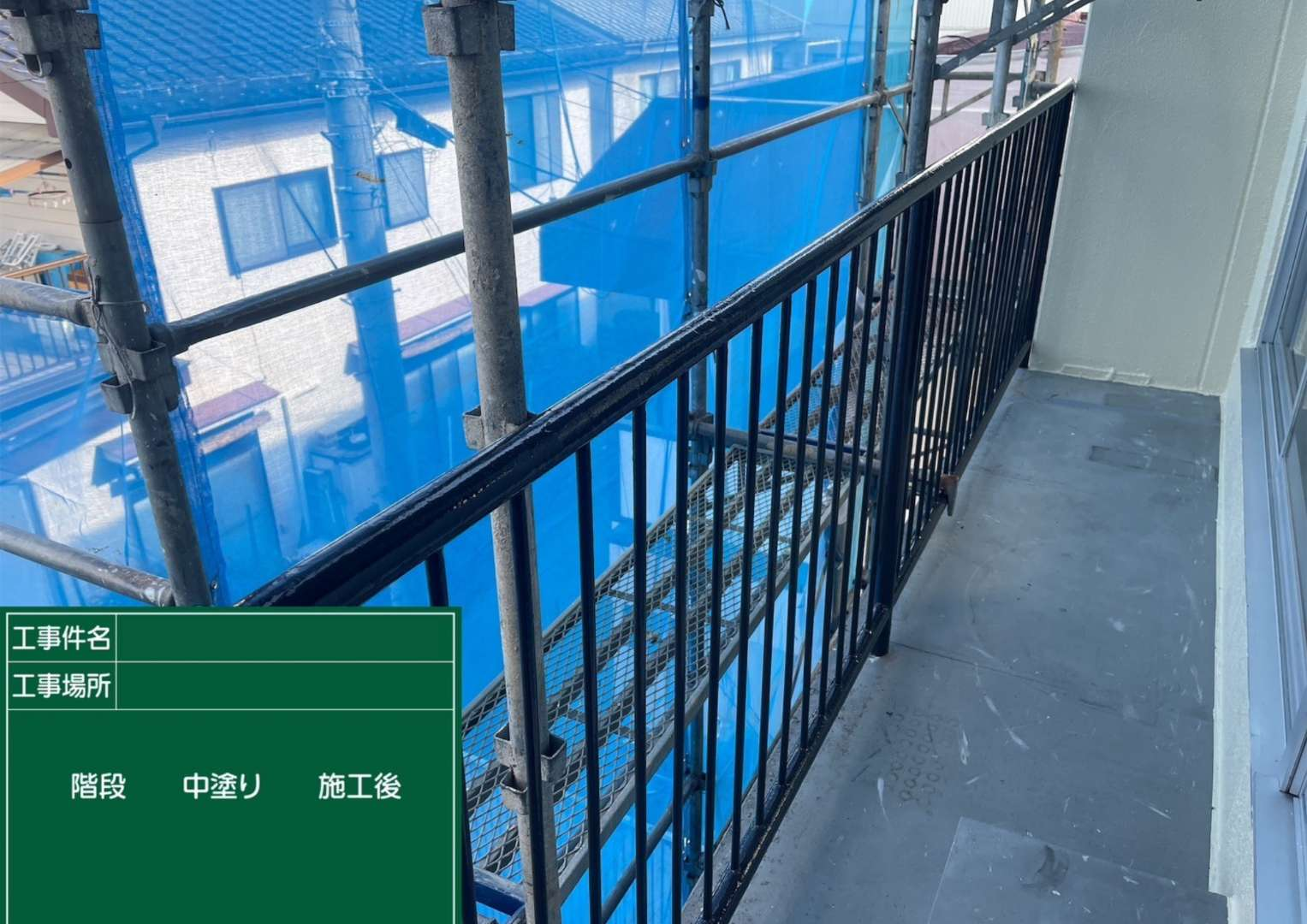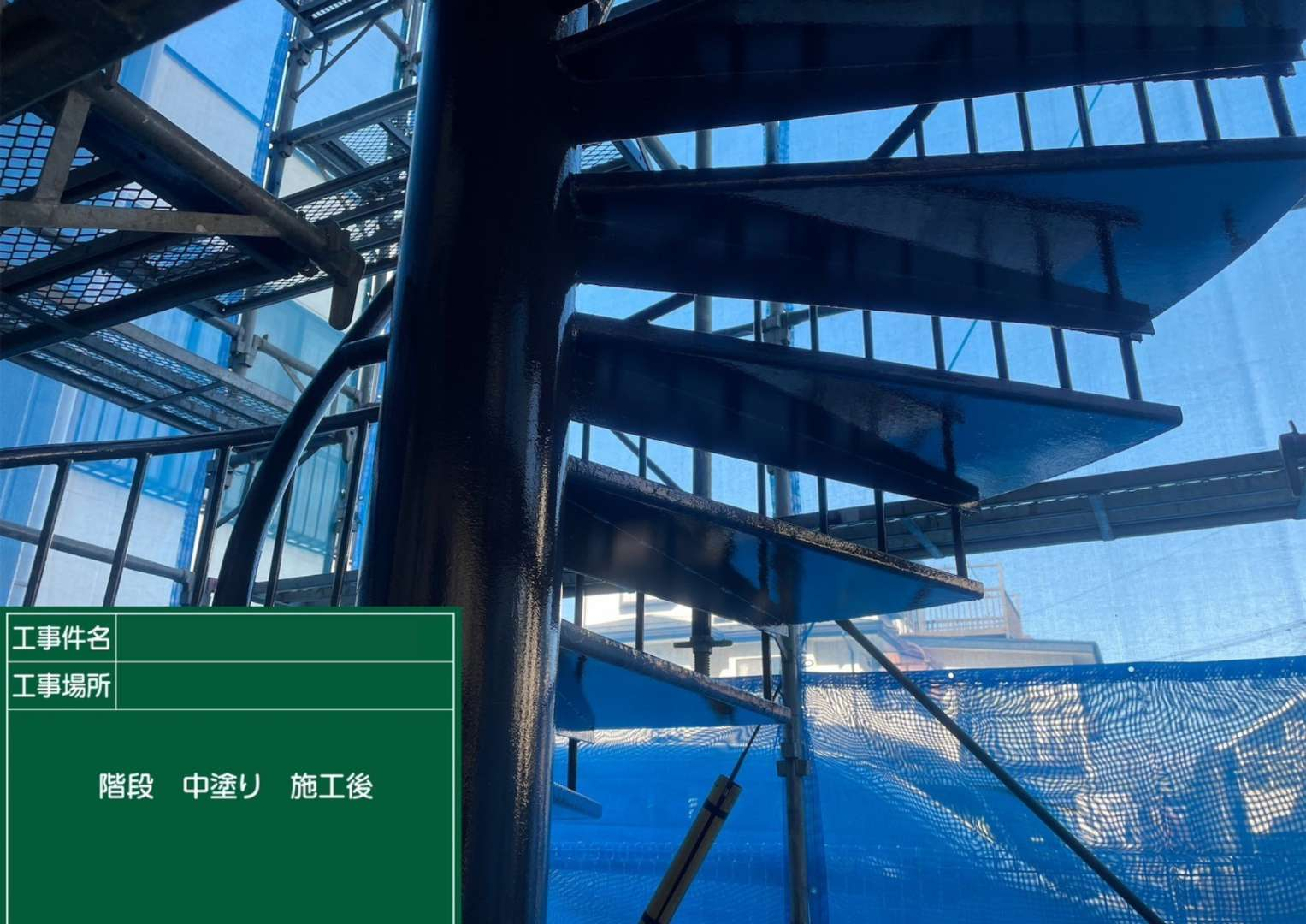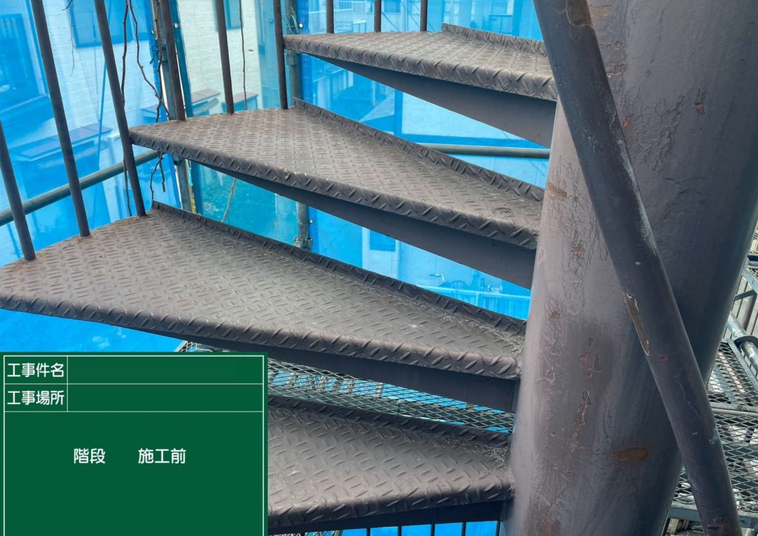 松本市内のビルにて実施した屋外鉄骨階段の塗り替え塗装工事の様子をご紹介します。