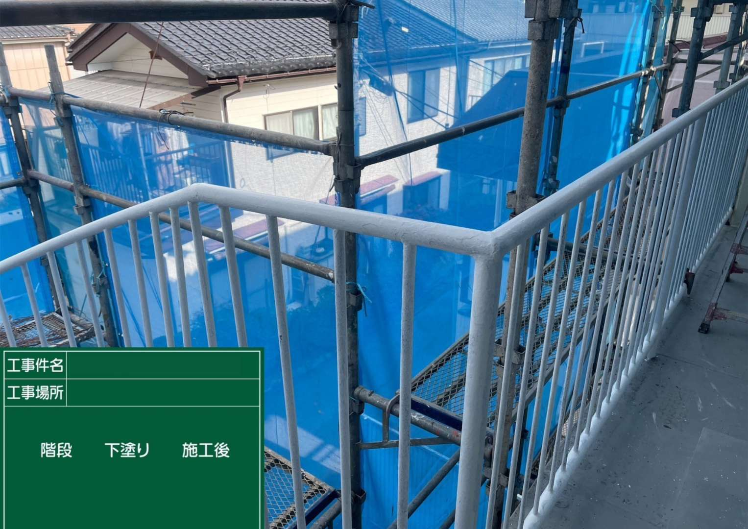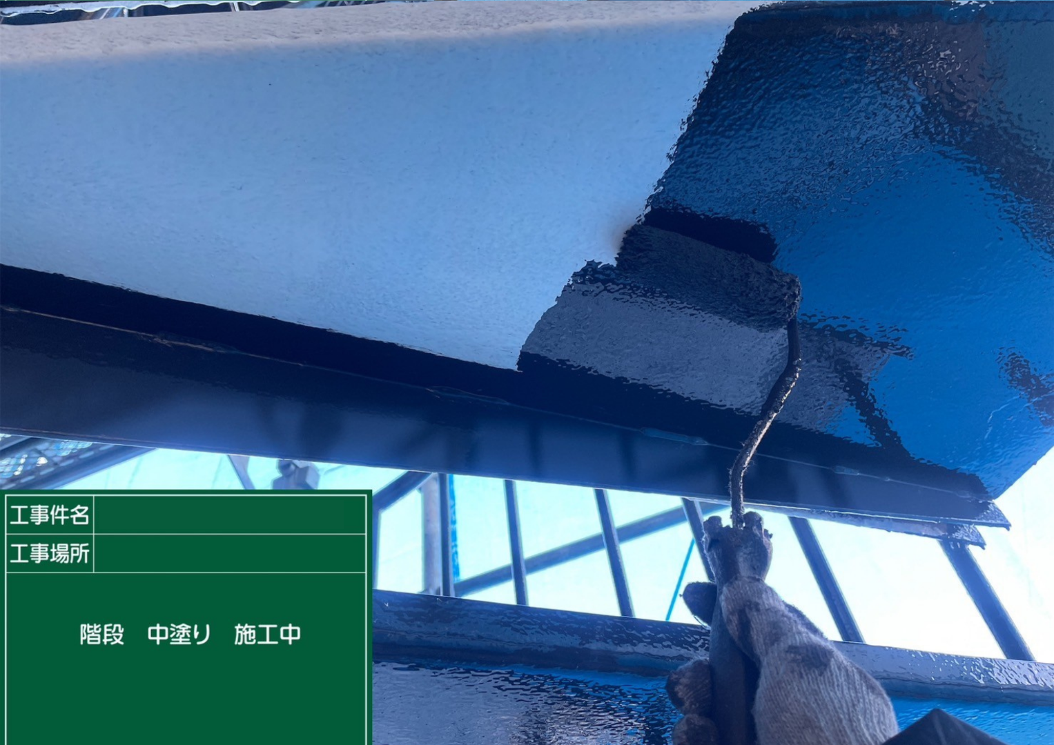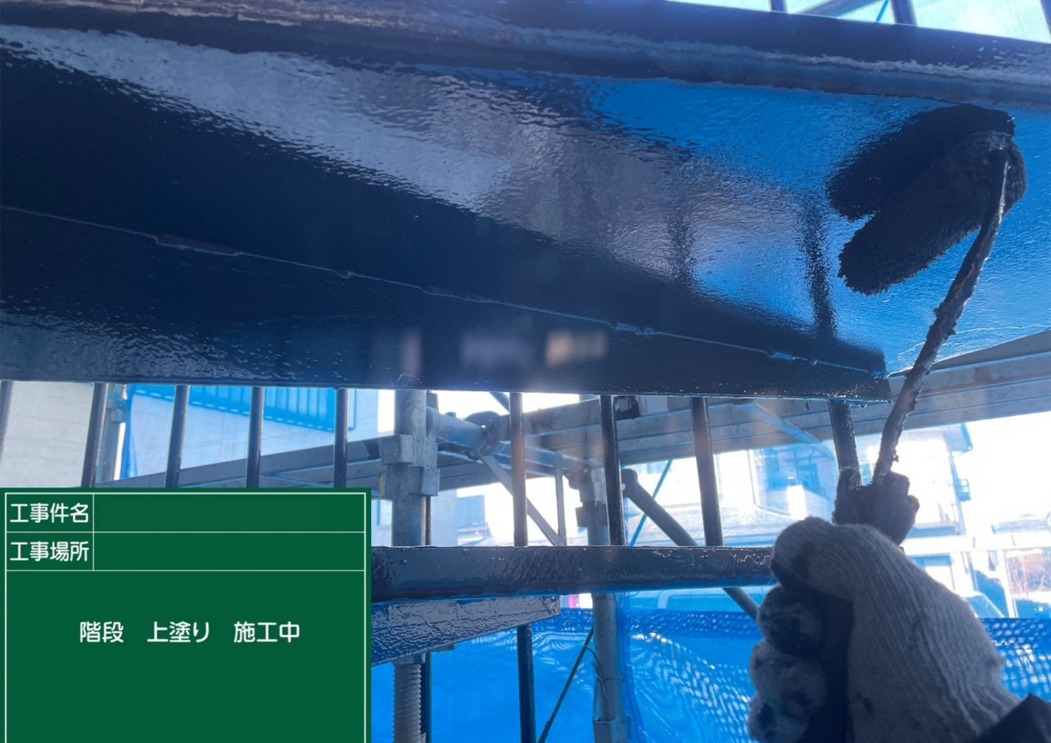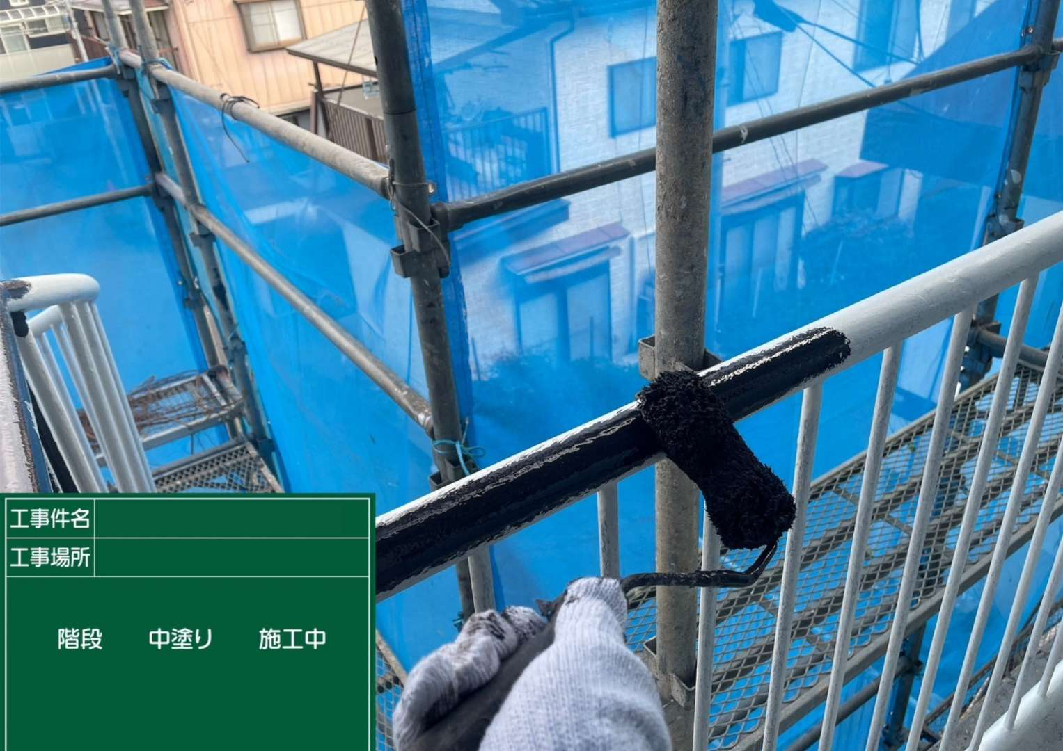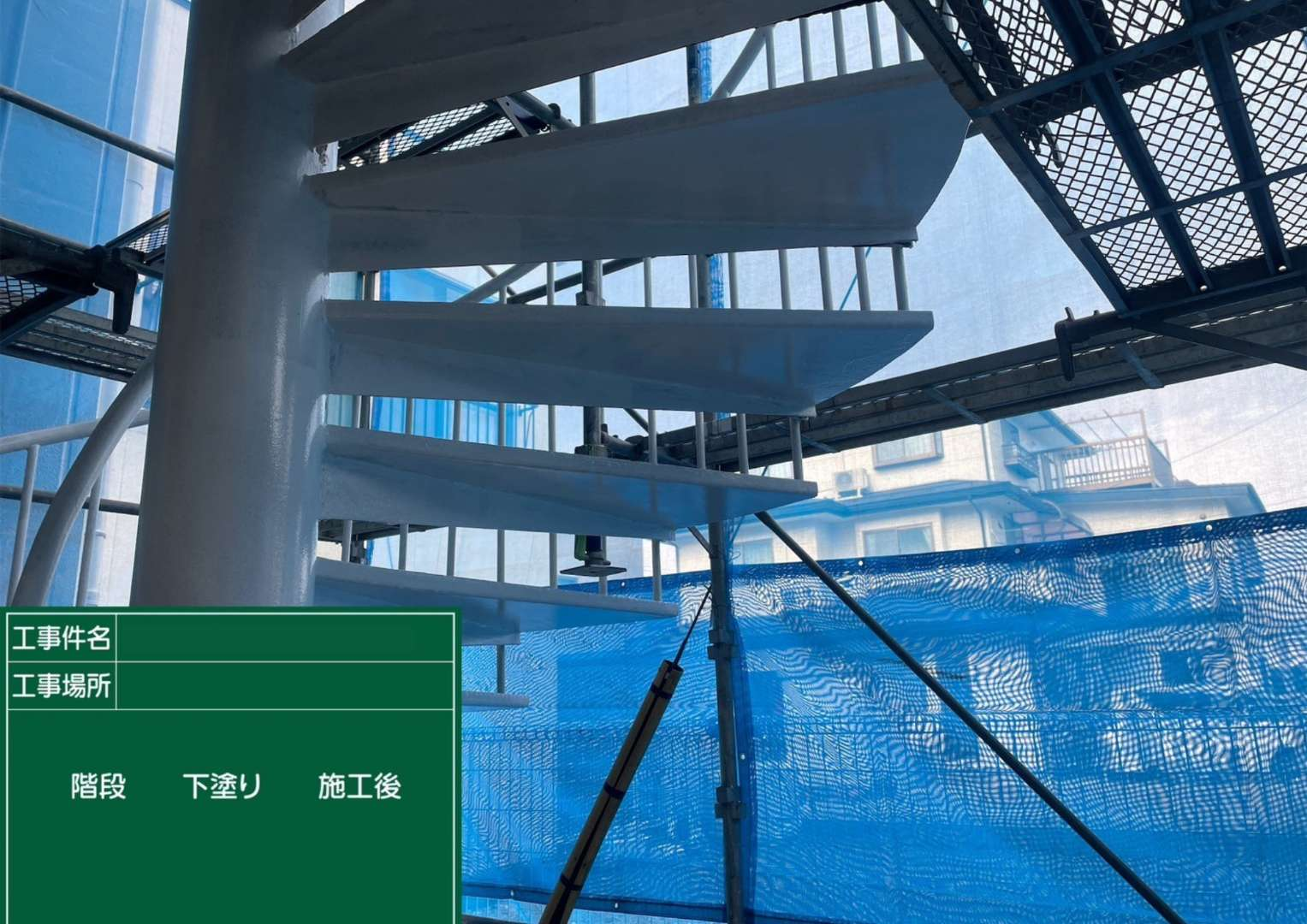 松本市内のビルにて実施した屋外鉄骨階段の塗り替え塗装工事の様子をご紹介します。