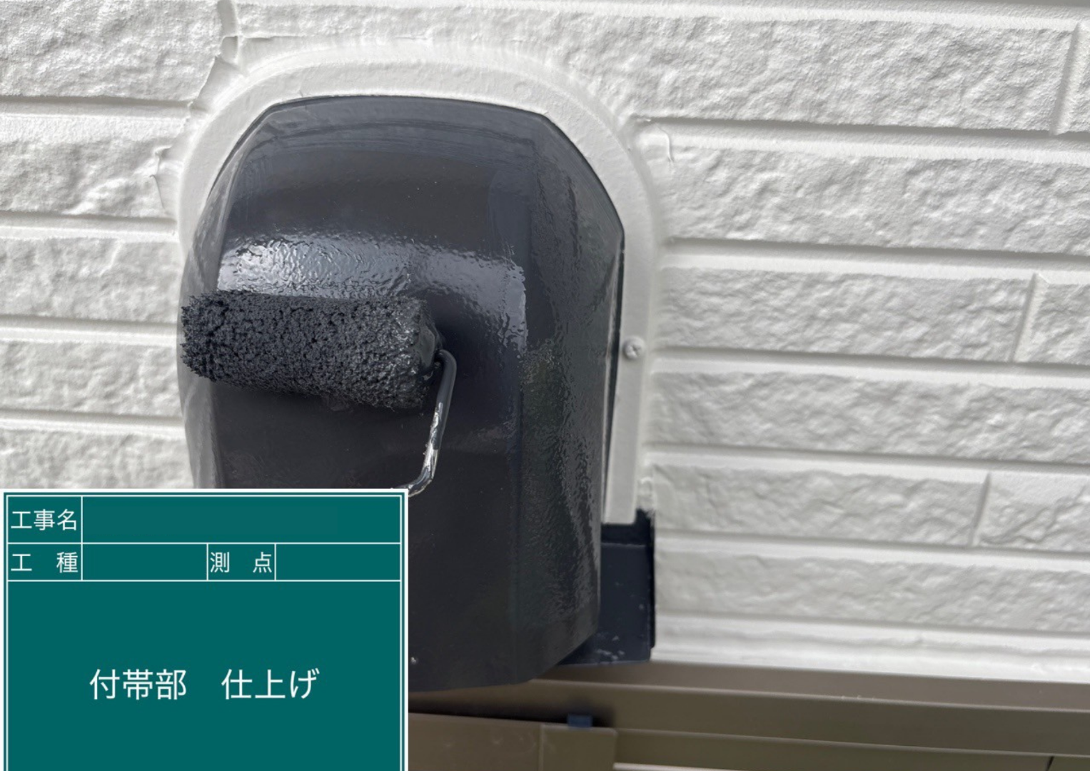 外壁に設置されている換気フードも、素材に合わせた塗料で塗装します。黒色で引き締めることで、外壁とのコントラストが生まれ、意匠性が高まります。サビや劣化の防止にも繋がります。
